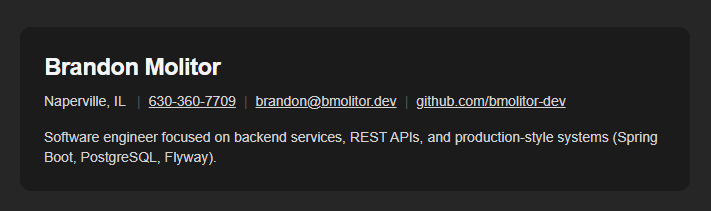 The backend is built with Java and Spring Boot, focusing on clean API design and layered application structure.